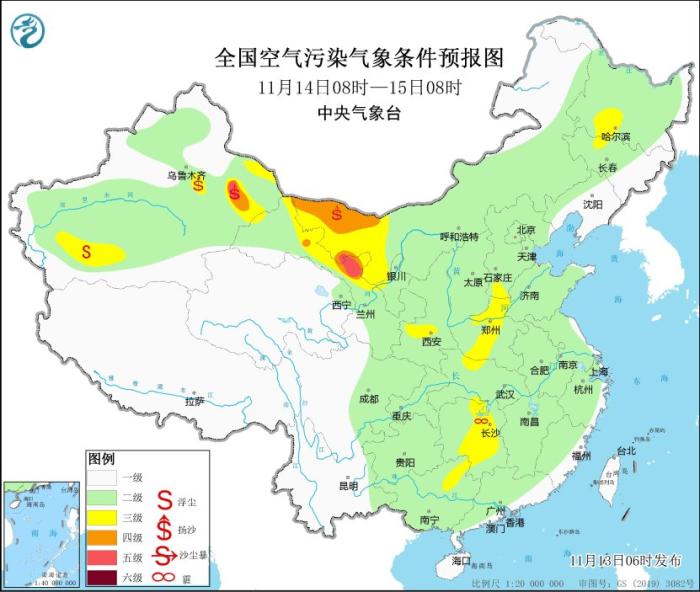翌日一周,区域大部地区大气扩散条目较好。新疆南疆盆地局地有扬沙或浮尘天气。15日,内蒙古西部、甘肃西部等地的部分地区有扬沙。