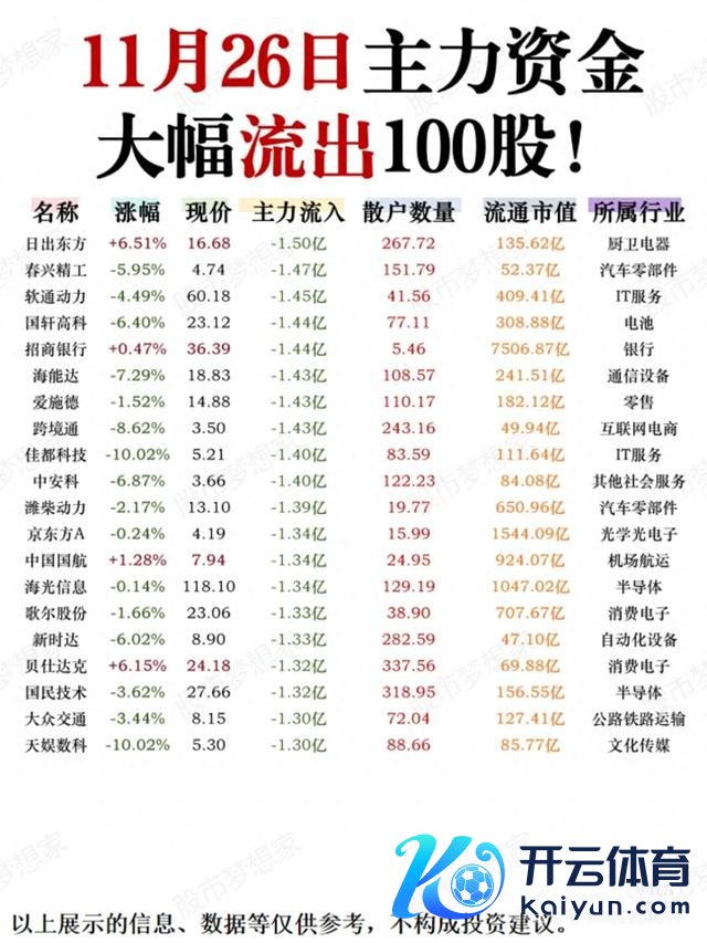 总之云开体育,主力资金大幅流出对股票商场的影响是复杂的,它既可能禁锢股价高涨,又可能影响商场的投资风向和趋势。因此,投资者需要密切关爱主力资金的动向,以便实时作念出投资方案。