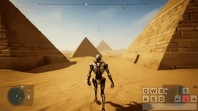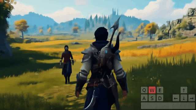 Genie 2约略智能反应通过键盘按键采用的动作,识别变装并正确移动。