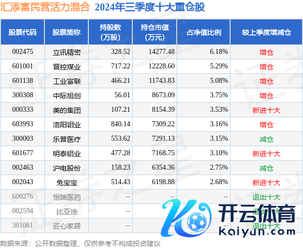 汇添富民营活力搀杂为搀杂型-偏股基金,左证最新一期基金季报表现,该基金金钱树立:股票占净值比91.66%,无债券类金钱,现款占净值比8.43%。基金十大重仓股如下: