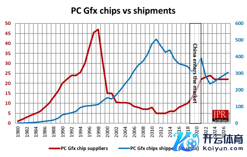 IT之家注:频频情况下 GPU 出货量齐要比 CPU 出货量高,因为险些悉数桌面和转移处置器齐会集成 GPU,再加上 AMD 和英伟达等公司每年还会销售数千万颗独显 GPU。