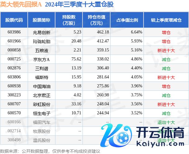 英大杰出答复A为羼杂型-天真基金,把柄最新一期基金季报深入,该基金金钱确立:股票占净值比89.21%,无债券类金钱,现款占净值比9.87%。基金十大重仓股如下: