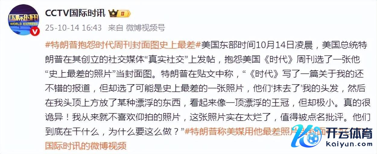好意思国东部本领10月14日凌晨,好意思国总统特朗普在其创立的酬酢媒体“信得过酬酢”上发帖,挟恨好意思国《时期》周刊选了一张他“史上最差的相片”当封面图。